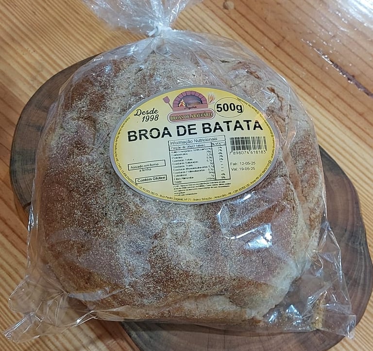 Ingredientes: farinha de trigo, batata, água, sal e fermento.