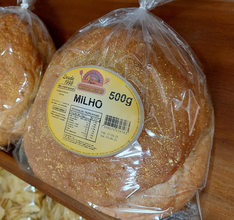 Ingredientes: farinha de trigo, milho, água, sal e fermento.
