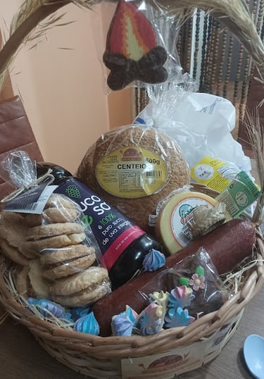 Você escolhe os nossos produtos favoritos — broas, pães caseiros, queijos, doces e muito mais — e a gente monta uma cesta personalizada e cheia de amor, perfeita para datas comemorativas ou para tornar qualquer dia mais especial. 💛